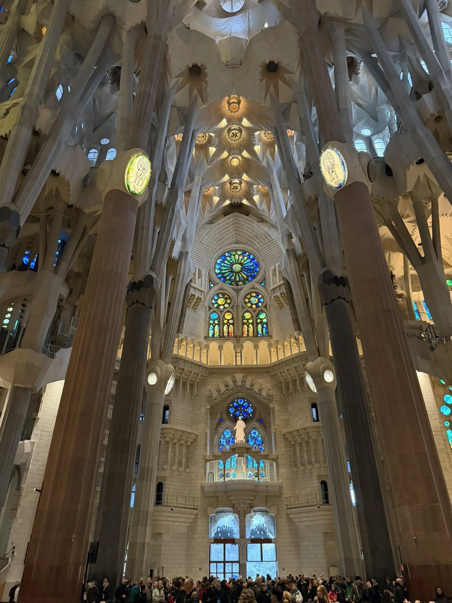 Stepping over the threshold of the basilica really did invite a moment of reflection. The sheer immensity of the interior seemed to hold the power to change your sense of direction. The tall, tree-like columns, the high-reaching vaults, and the flowing shapes all pull your gaze upwards. Even without sunlight streaming through the stained glass, the space had a sacred - and to some a spiritual - calm.