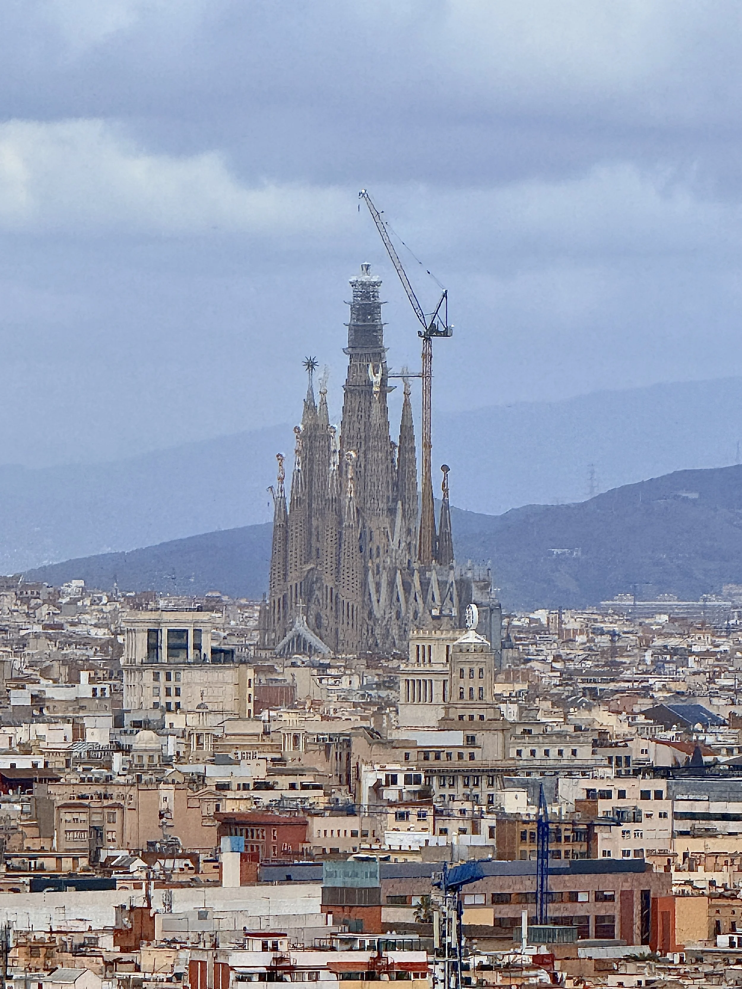 Our first stop required no searching: La Sagrada Família, its spires rising through the stormy grey sky, the 140‑year‑in‑construction basilica was breathtaking.